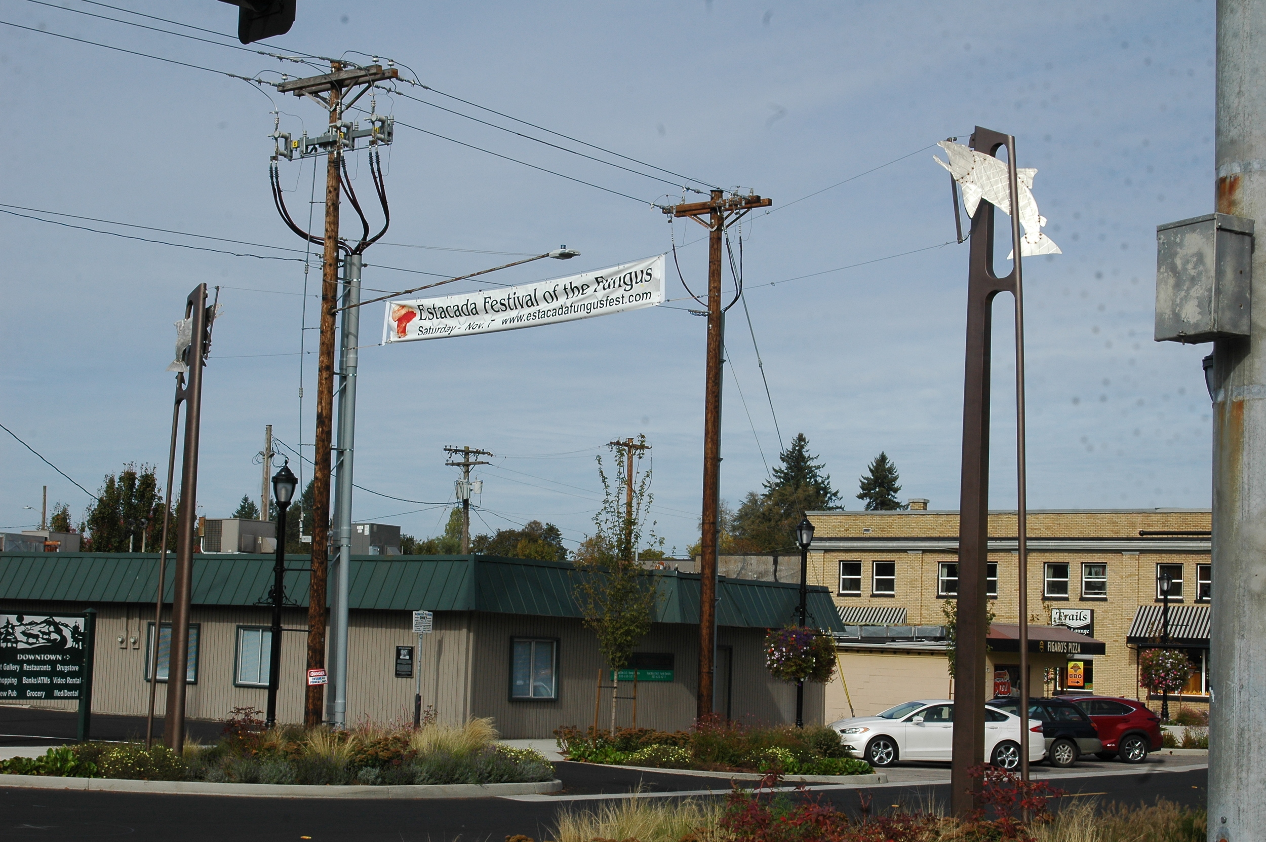 Two pair of poles located at the Estacada town entrance featuring a self-hoisting availability.